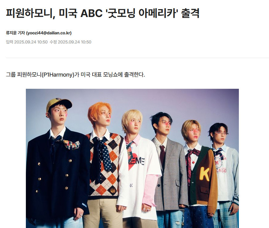 中國藝人網(wǎng)訊 www 11job com 據(jù)媒體報道,P1Harmony 將于當?shù)貢r間24日出演美國ABC電視臺的《Good Morning America》。該節(jié)目是美 ...