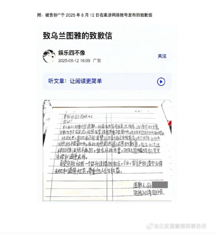 被告人孫某某就是其中之一,他發(fā)布的內(nèi)容,本質(zhì)是對(duì)烏蘭圖雅職業(yè)付出的惡意抹黑,法院公正的判決與被告的致歉,還給了烏蘭圖雅一個(gè)公平的說(shuō)法。