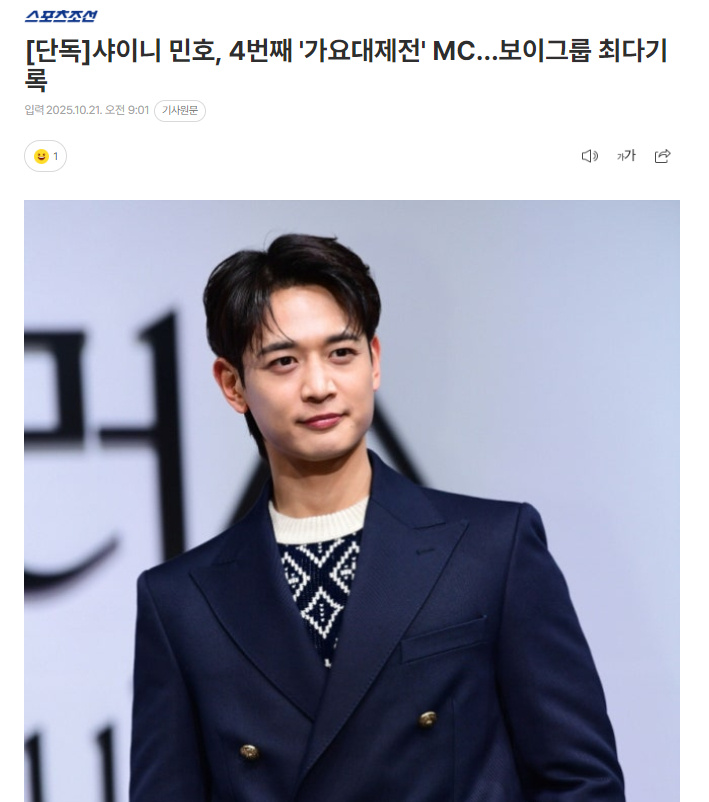 此次是珉豪繼去年之后連續(xù)3年擔任《歌謠大祭典》MC,也是第四次擔任《歌謠大祭典》MC。創(chuàng)下歷代男團成員中擔任MC次數最多的記錄。