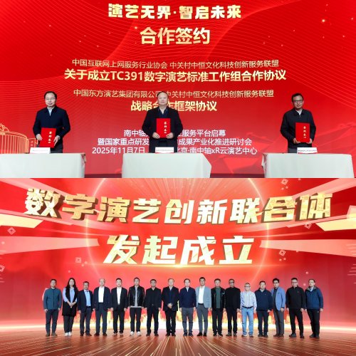 “數(shù)字演藝創(chuàng)新聯(lián)合體”與“TC391云演藝工作組(國標(biāo))”成立在現(xiàn)場簽約 。這標(biāo)志著一個以南中軸兩平臺一中心為軸線,鏈接文化科技產(chǎn)學(xué)研用的高能級數(shù)字演藝創(chuàng)新生態(tài)已然成型。