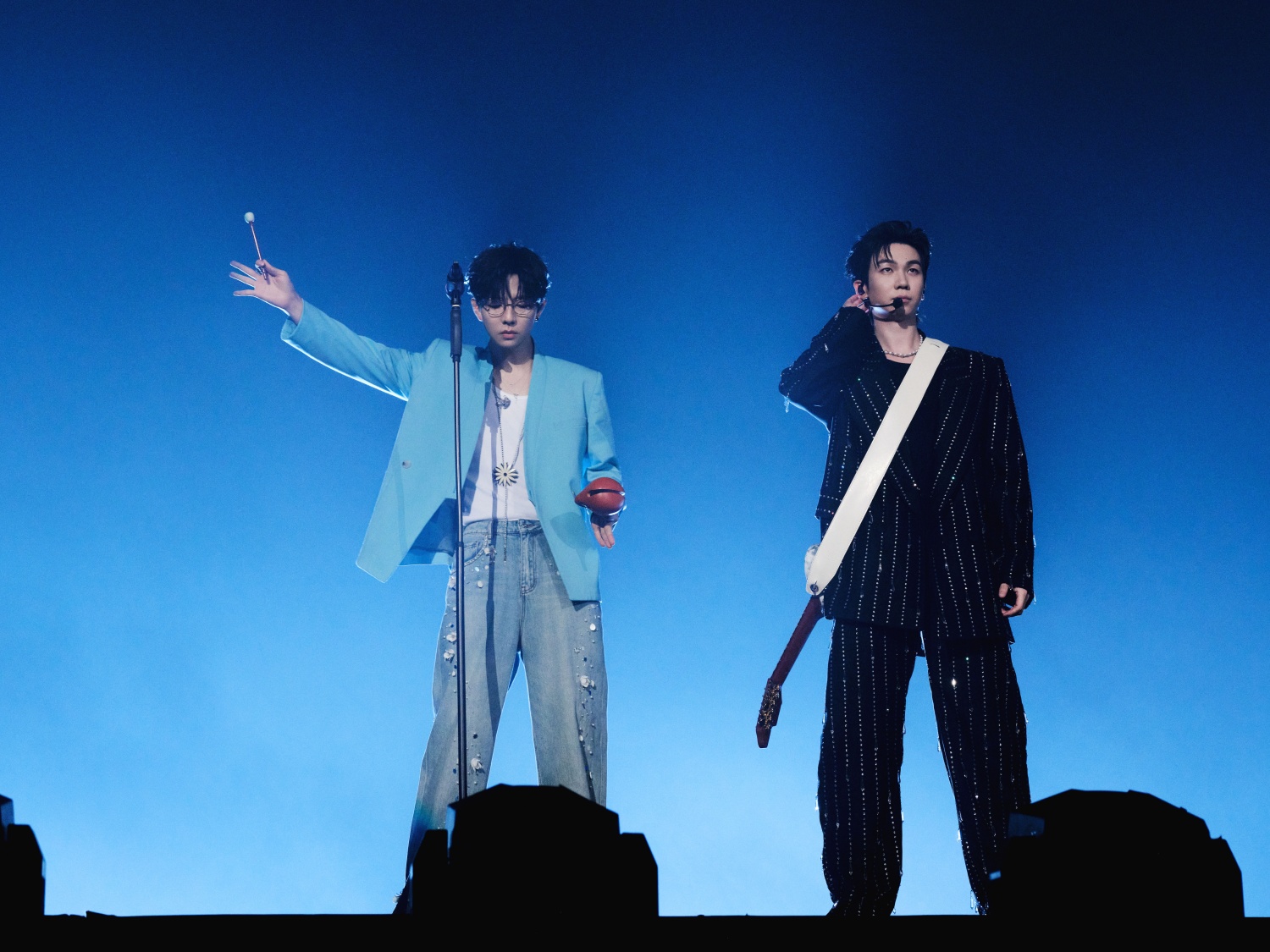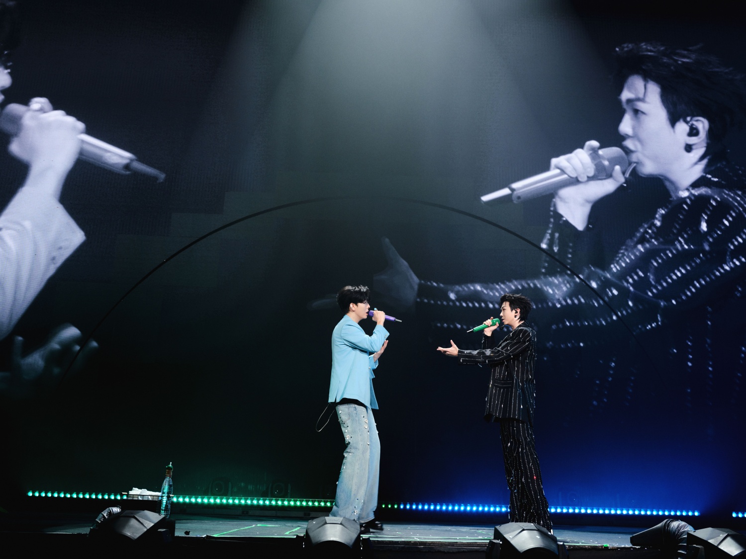 好友白舉綱作為當(dāng)晚驚喜嘉賓登臺(tái),二人首度合作演繹歌曲《一指間的距離》。在演繹《呆若木魚》這首歌時(shí),胡夏在臺(tái)上幽默“抱怨”被白舉綱安排敲木魚的工作,白舉綱笑稱“每敲一下都是在為現(xiàn)場(chǎng)觀眾積功德”,兩人你來我往的對(duì)話逗趣自然,展現(xiàn)出好友間的默契與輕松氛圍。