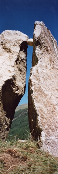張琪凱 《簡單游戲》 2003 裝置 2m (高) 石頭,鴕鳥蛋