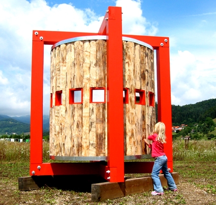 張琪凱 《轉(zhuǎn)經(jīng)桶》 裝置 2006 250 X 250 X 205 cm 木頭 不銹鋼 奧地利 Das Griffner Haus 收藏