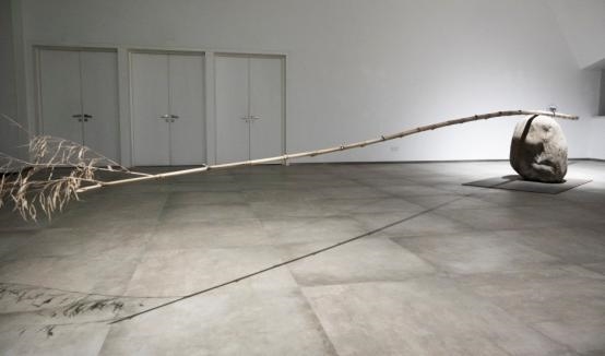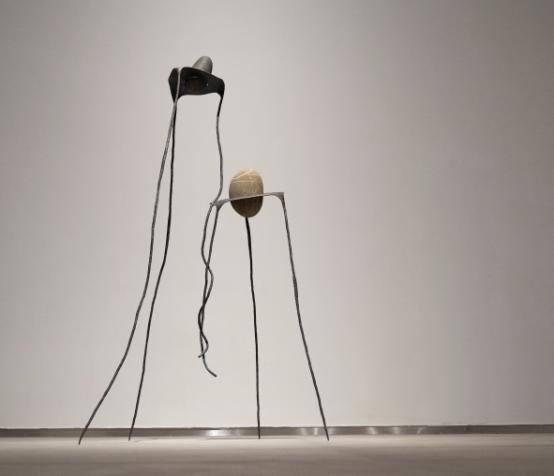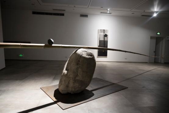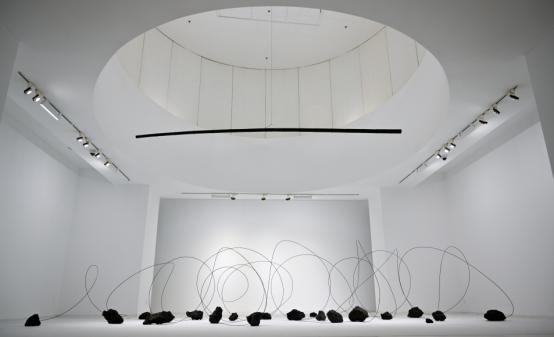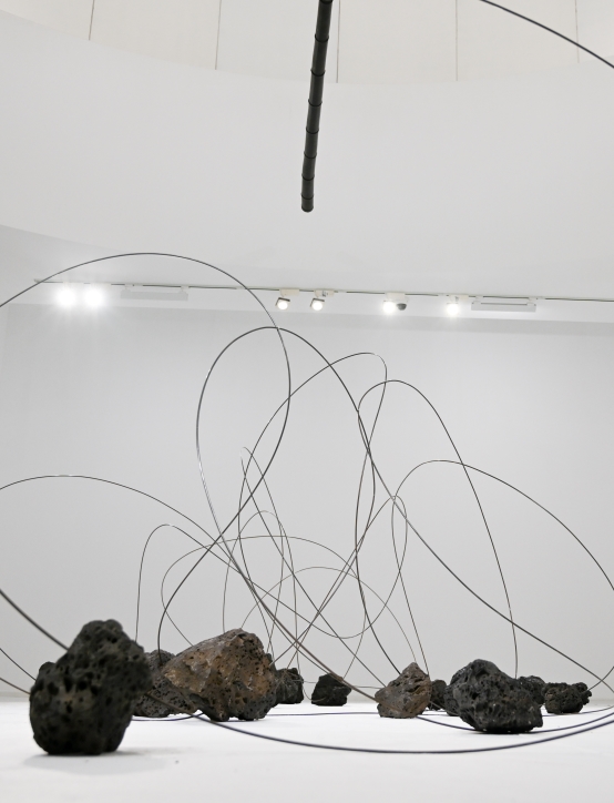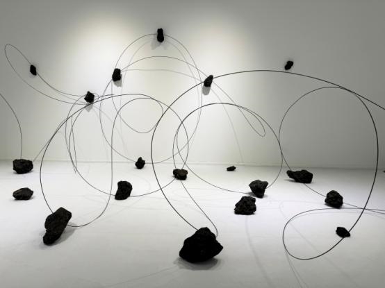 張琪凱《相對(duì)的止》 裝置 石頭鋼絲電機(jī) 可變尺寸2021