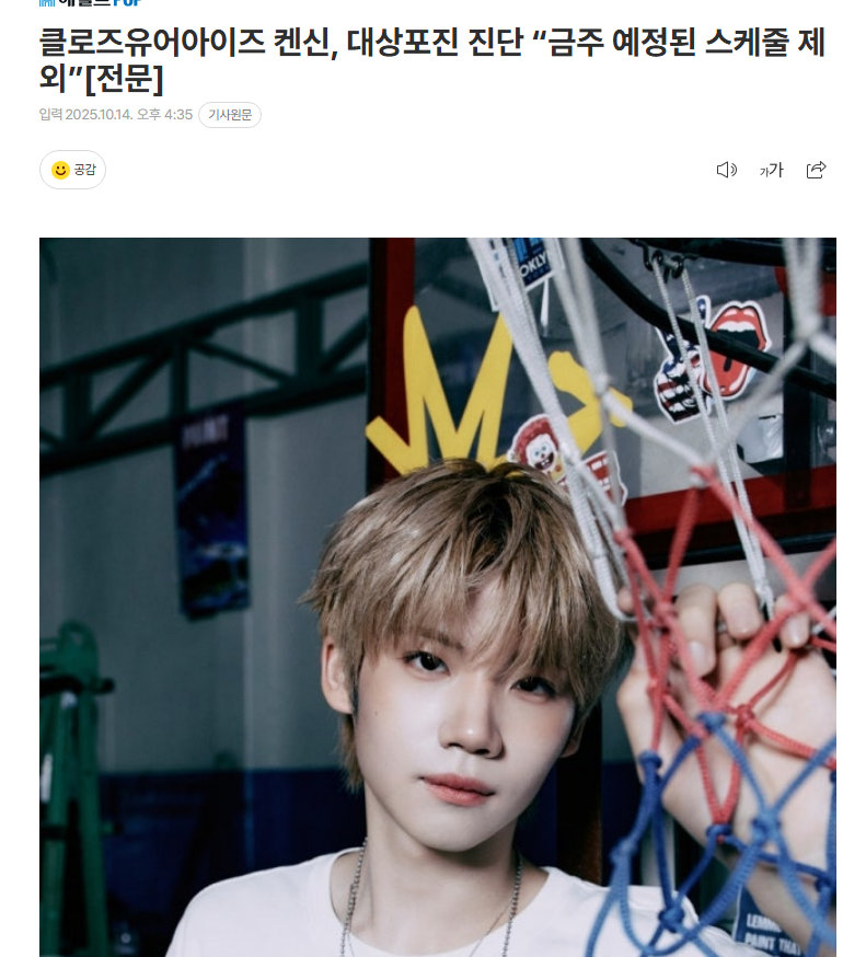 CLOSE YOUR EYES成員KENSHIN確診帶狀皰疹 暫停本周行程