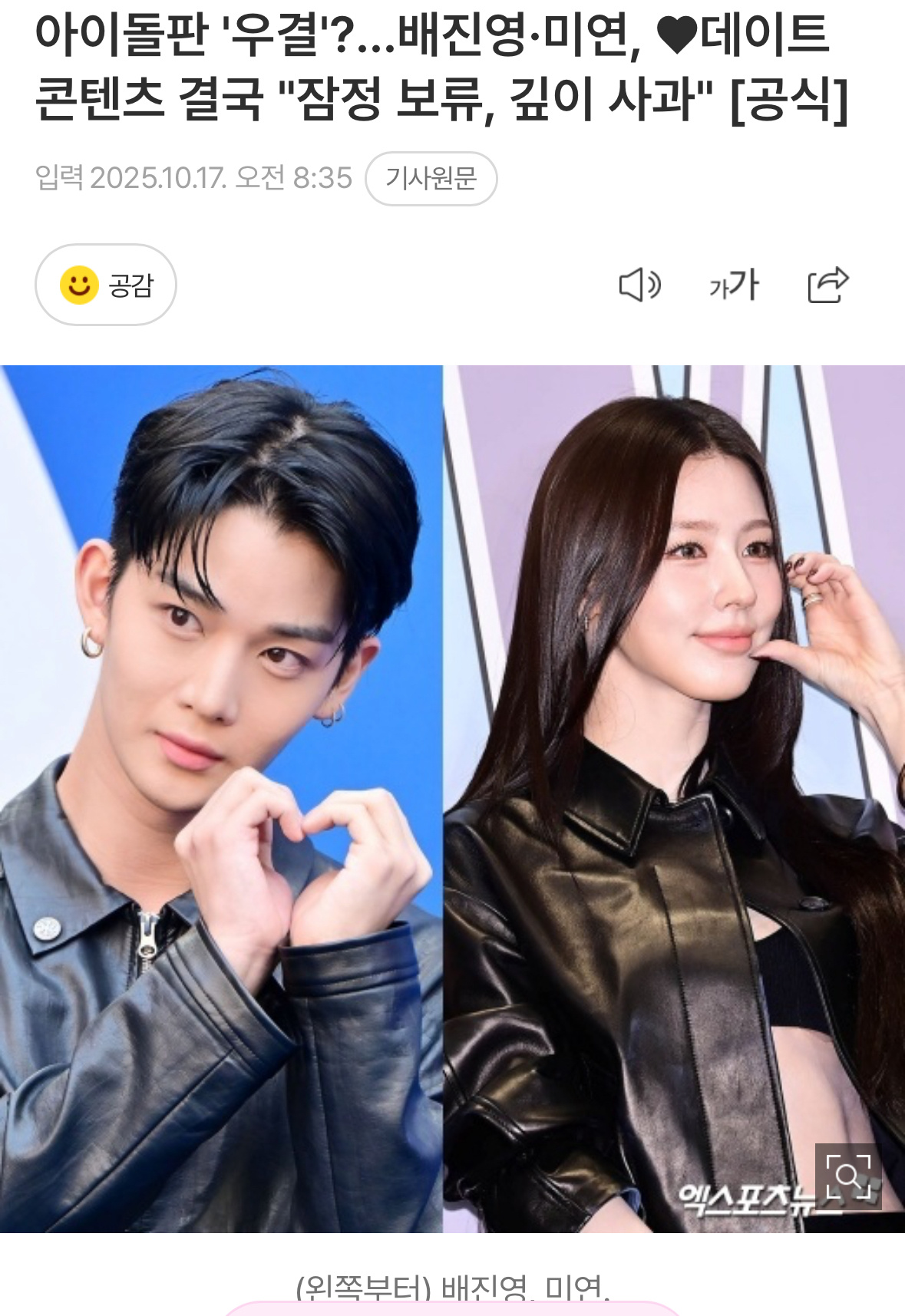 裴珍映x美延約會(huì)綜藝最終暫停公開 節(jié)目組致歉