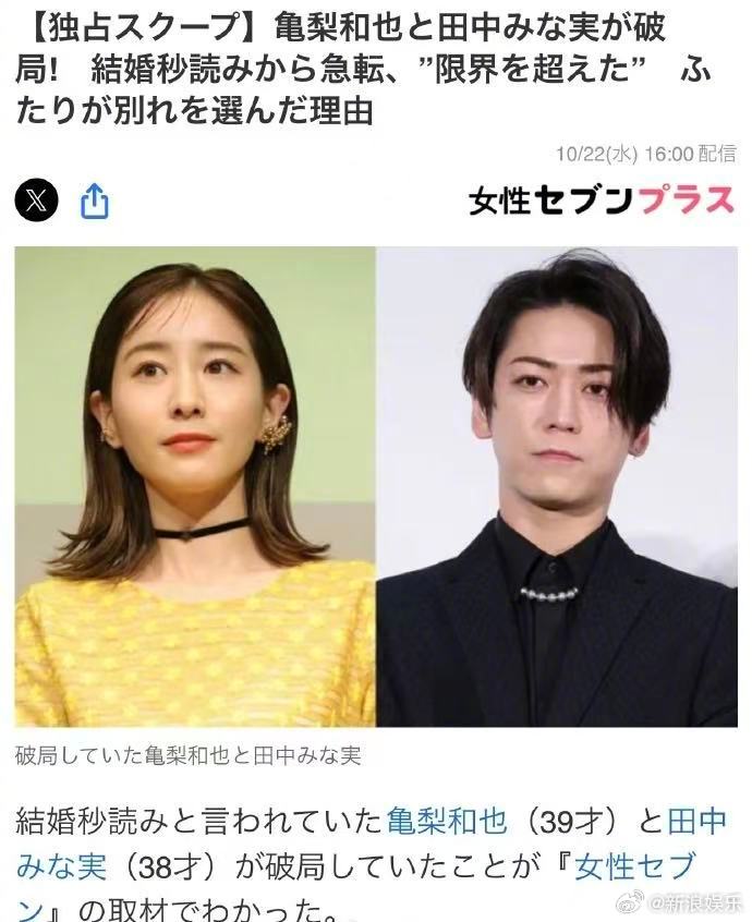 龜梨和也田中美奈實(shí)分手 結(jié)束近兩年的交往中國藝人網(wǎng)訊 www 11job com 據(jù)日媒報(bào)道,龜梨和也和田中美奈實(shí)已分手,結(jié)束了近兩年 ...