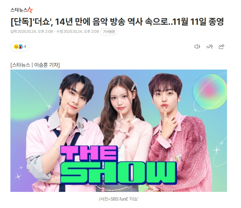 中國藝人網(wǎng)訊 www 11job com 據(jù)24日,韓媒獨(dú)家采訪結(jié)果,SBS的音樂節(jié)目《The Show》將于今年11月11日進(jìn)行最后一次播出后正式畫上句 ...